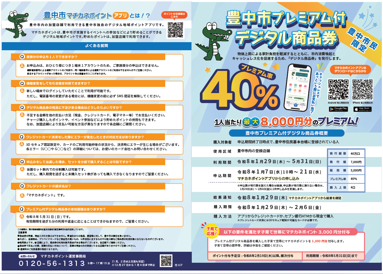 フェリカポケットマーケティング株式会社(東京都文京区、代表取締役:納村哲二、以下当社)は、豊中市に対し、2022年10月より「マチカネポイントアプリ」を提供しております。このたび、本アプリを活用したプレミアム付デジタル商品券の申し込みが、2026年1月7日(水)より開始しましたので、お知らせいたします。