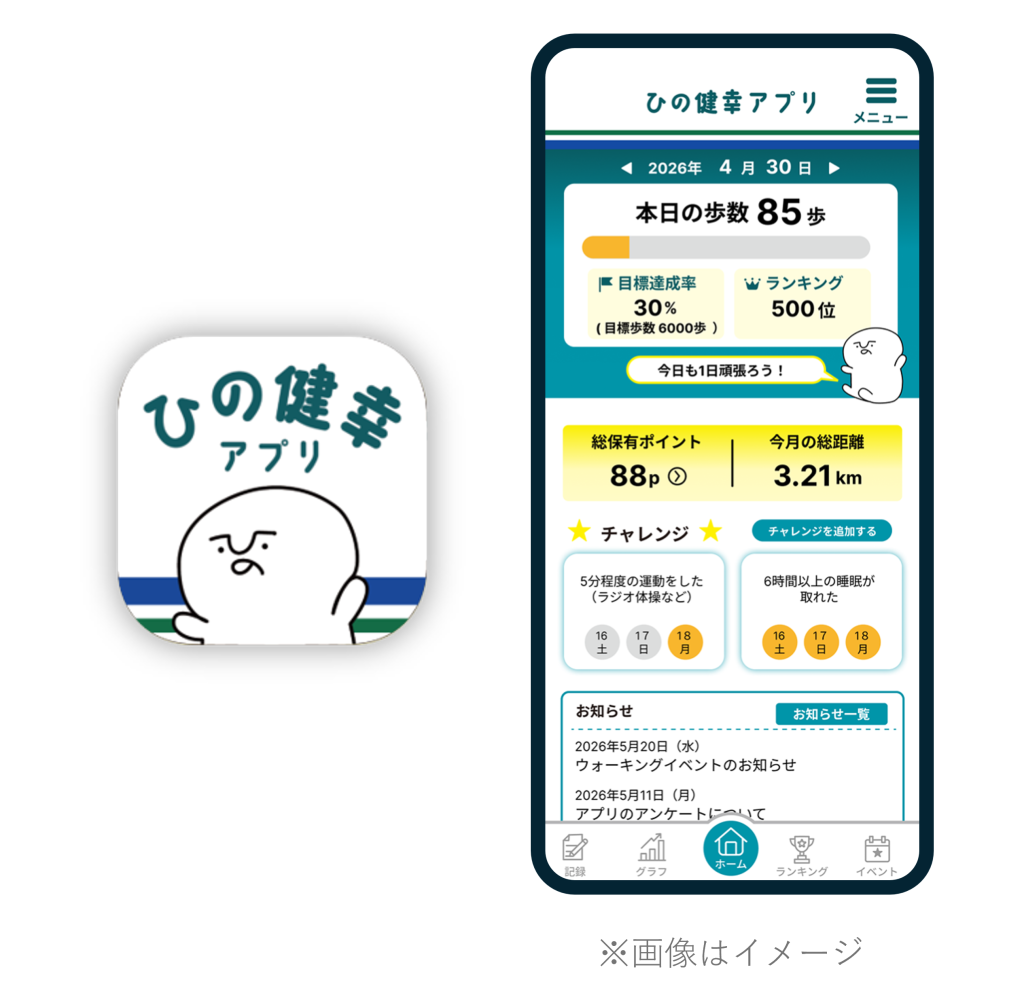 「ひの健幸アプリ」公式HP:https://hino.karada.live/